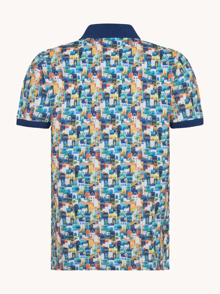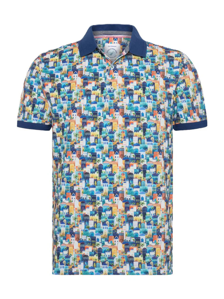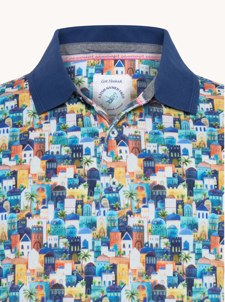 Bring a burst of colour to your wardrobe with the A Fish Named Fred Town Polo in Blue. Crafted from 95% organic cotton with 5% elastane, this modern-fit polo offers a slightly tailored silhouette for a smart yet comfortable look. The vibrant townscape print is complemented by a contrast collar and hems, while branded buttons add a signature touch. Soft, stretchy, and easy to care for, it’s perfect for all-day wear and machine washable for convenience.