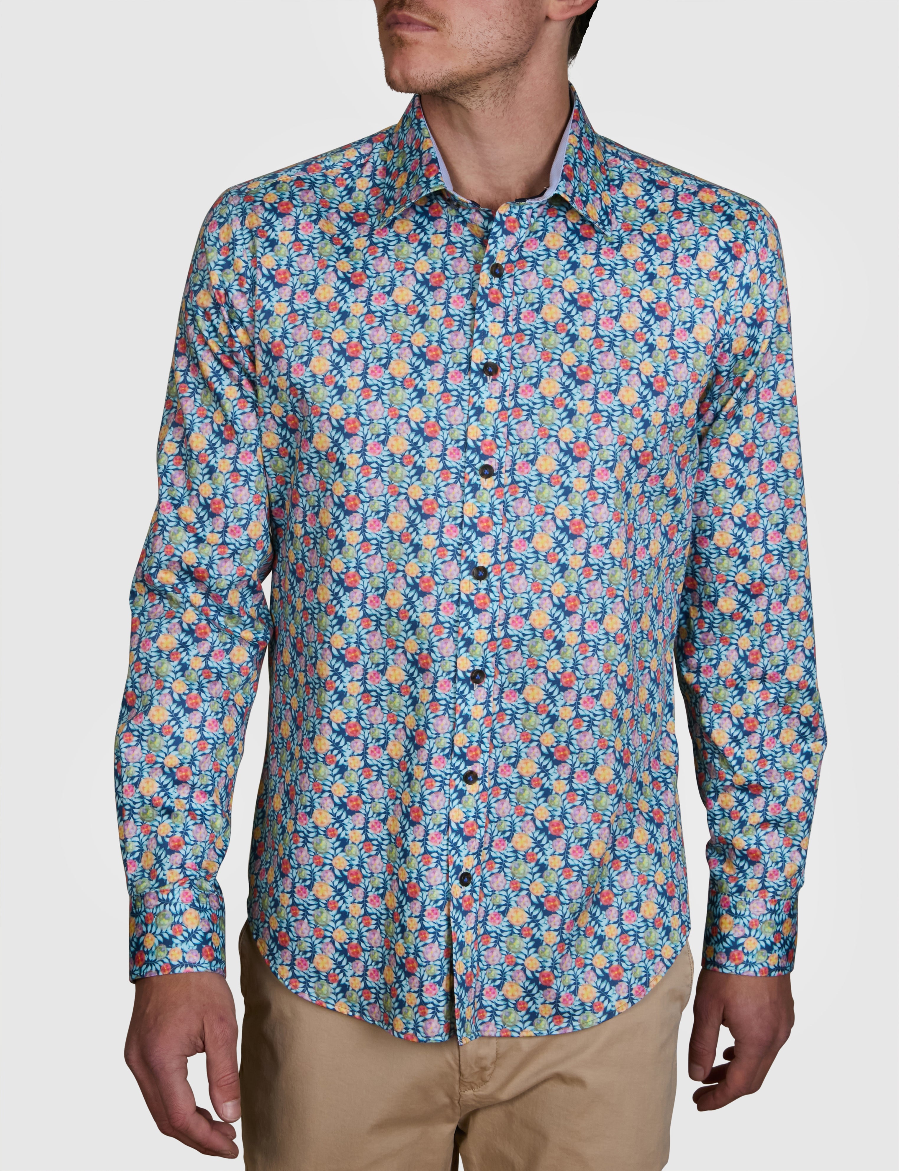 Bring colour to your wardrobe with the Abelard Digital Print Bloom Shirt. Crafted from 100% cotton, this slim-fit shirt features a vibrant floral print with contrast cuffs and collar for a touch of detail. The soft, lived-in feel makes it comfortable from the first wear, while the rounded hem ensures a clean finish whether tucked or untucked. It’s the perfect balance of style and ease - pair it with chinos, jeans or shorts for the perfect summer outfit.