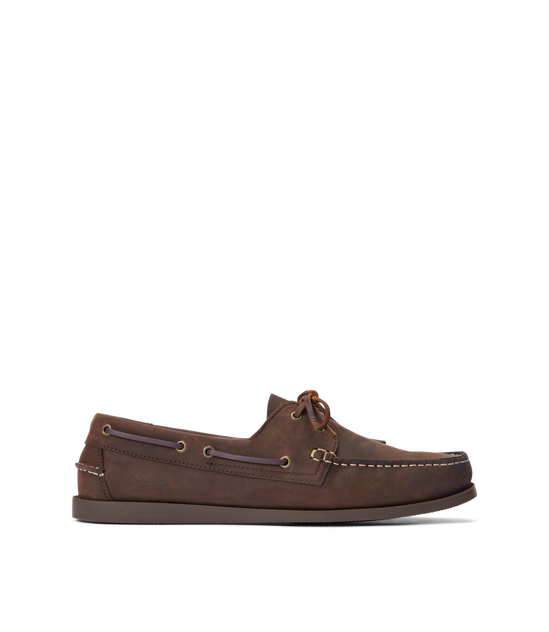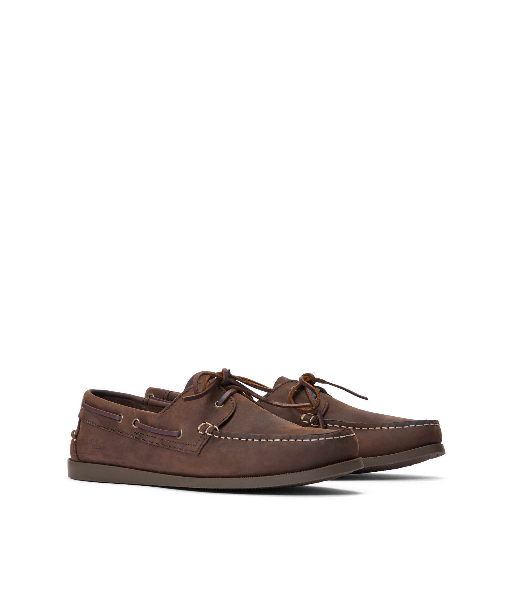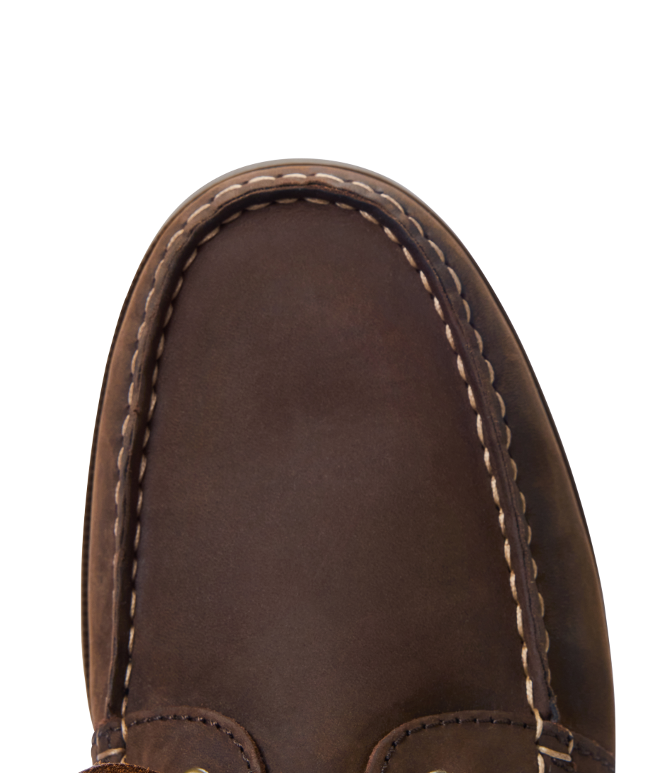 An everyday style for summertime adventures. This casual shoe is crafted in a traditional moccasin construction from premium crazy horse leather, with a stitched rubber sole and durable leather laces.