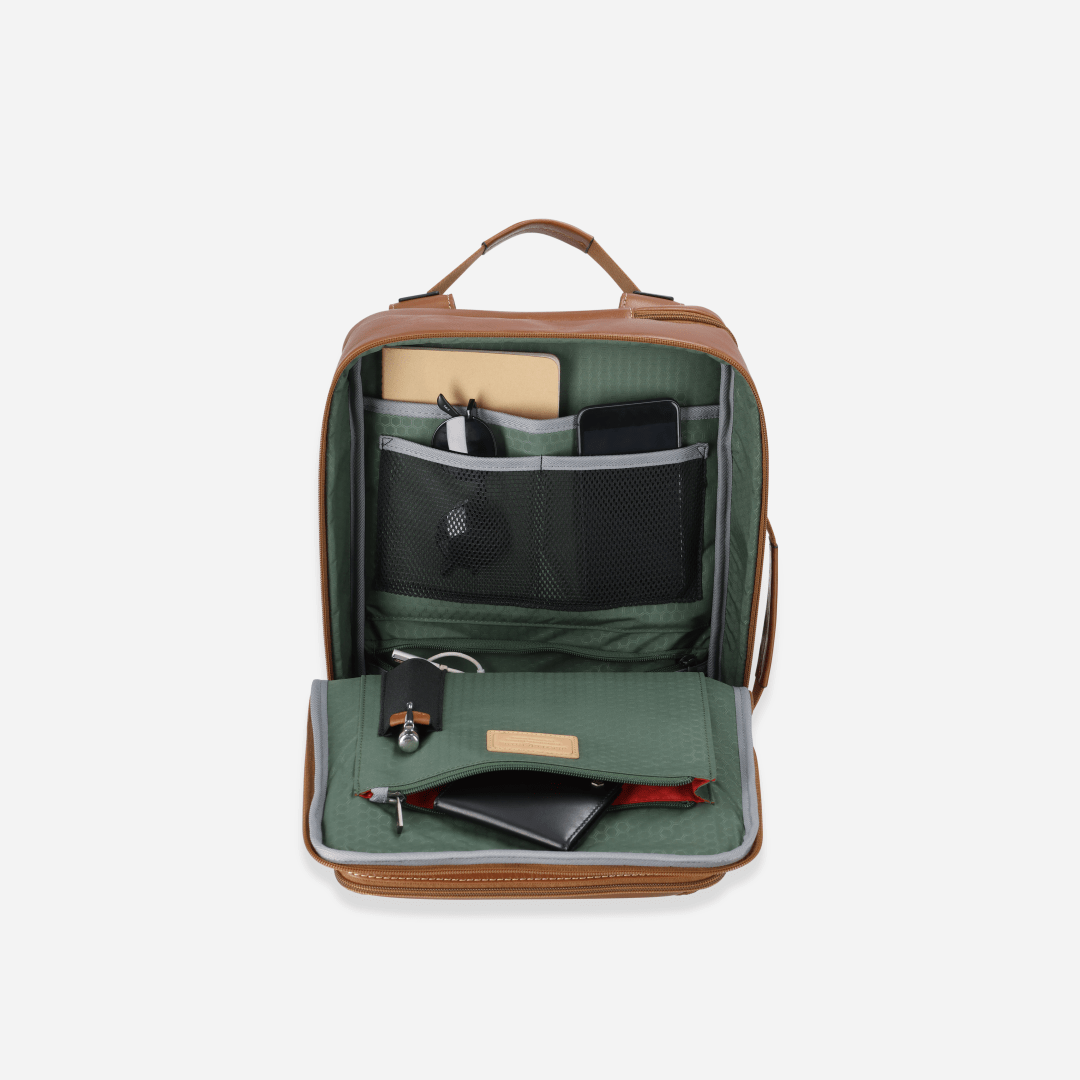 Continue shoppingThis sleek leather backpack blends minimalist style with smart functionality. Inside, well-designed compartments keep your laptop, tablet, and essentials organised, with extra space for a change of clothes—perfect for work, travel, or daily adventures