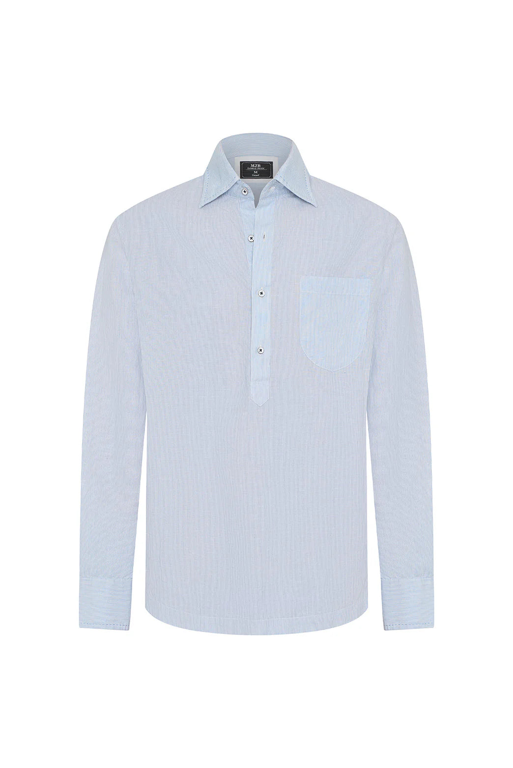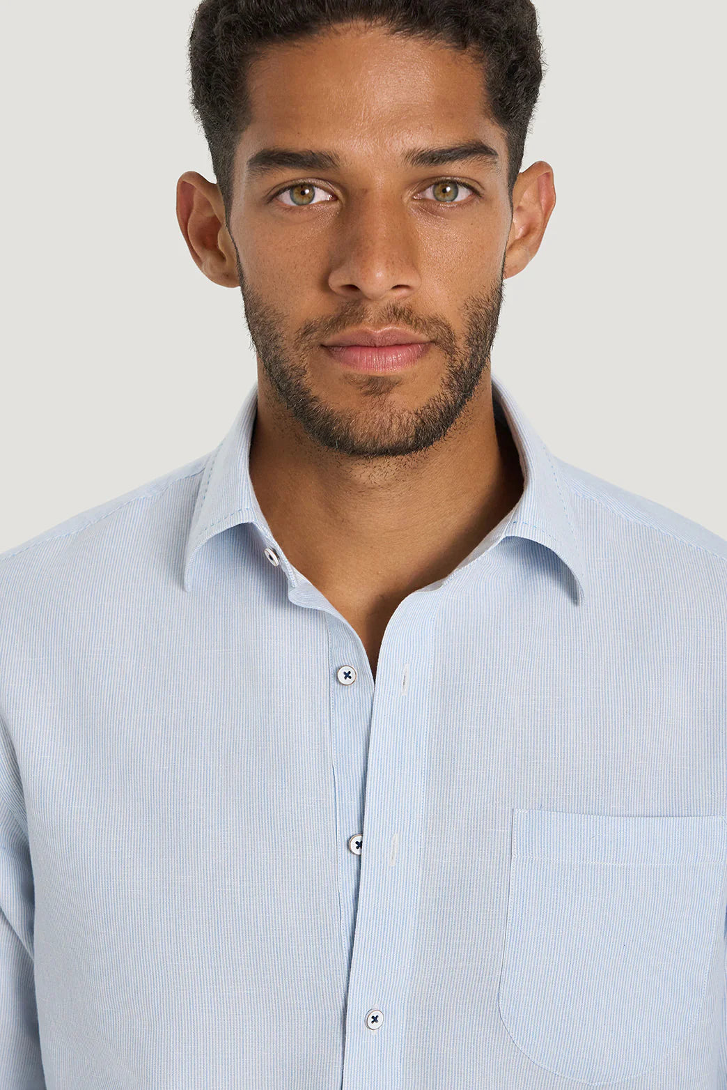 M.J. Bale - Caloundra Shirt - Micro Stripe - Sky - MULTIBUY