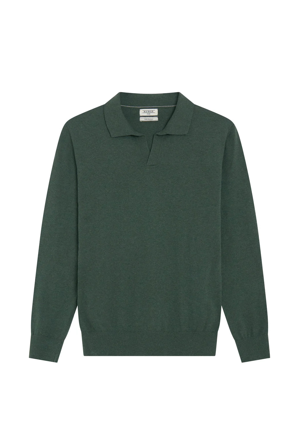 M.J. Bale - Carter Long Sleeve Polo Jumper - Cotton/Cashmere - Mid Green