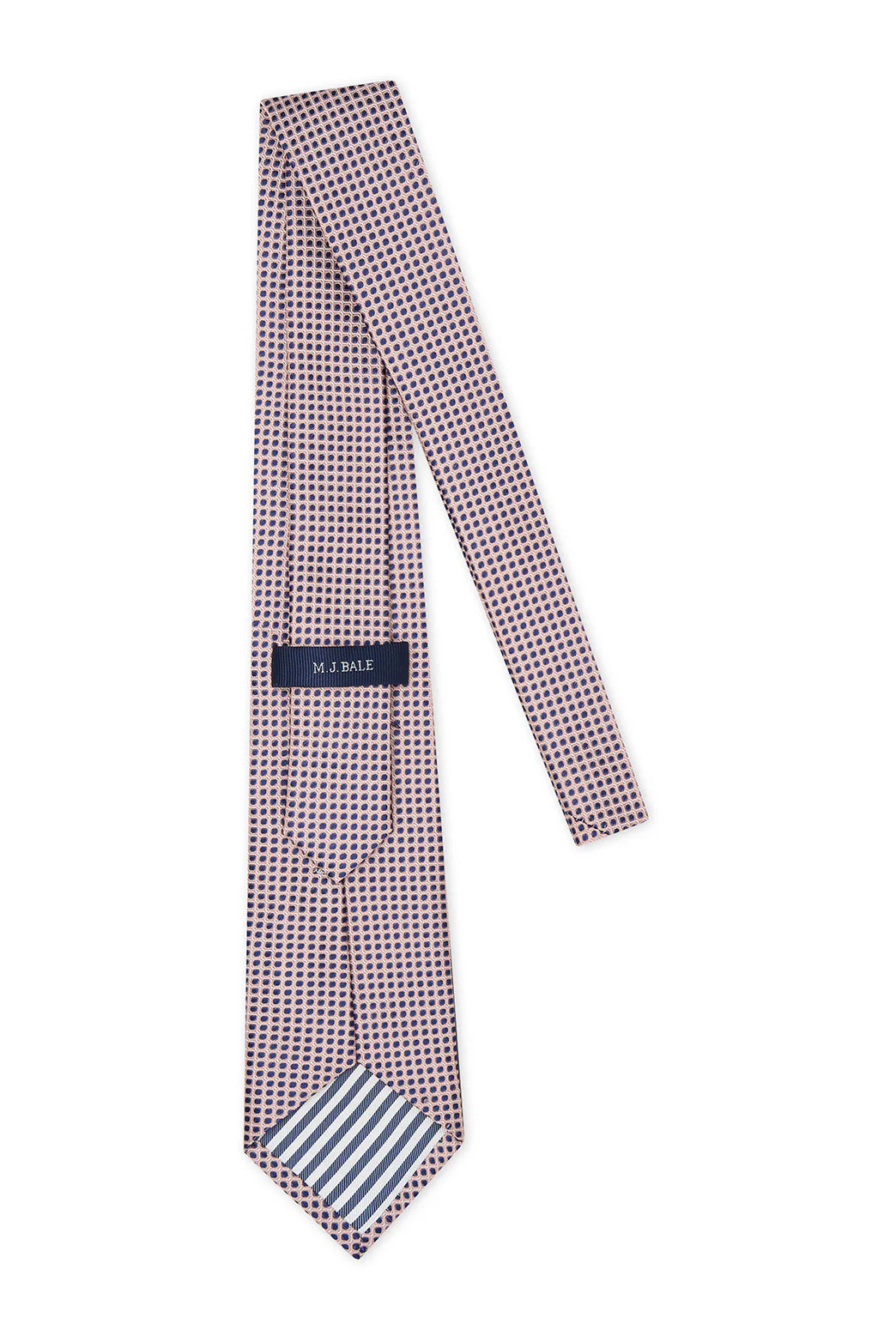 Crafted from pure silk, the M.J. Bale Chadwick Silk Tie in Navy Pink features an intricate geometric pattern that blends refined navy and soft pink tones. Perfect for adding a sophisticated pop of colour to formal and business attire, this tie offers a polished finish with a luxurious sheen.