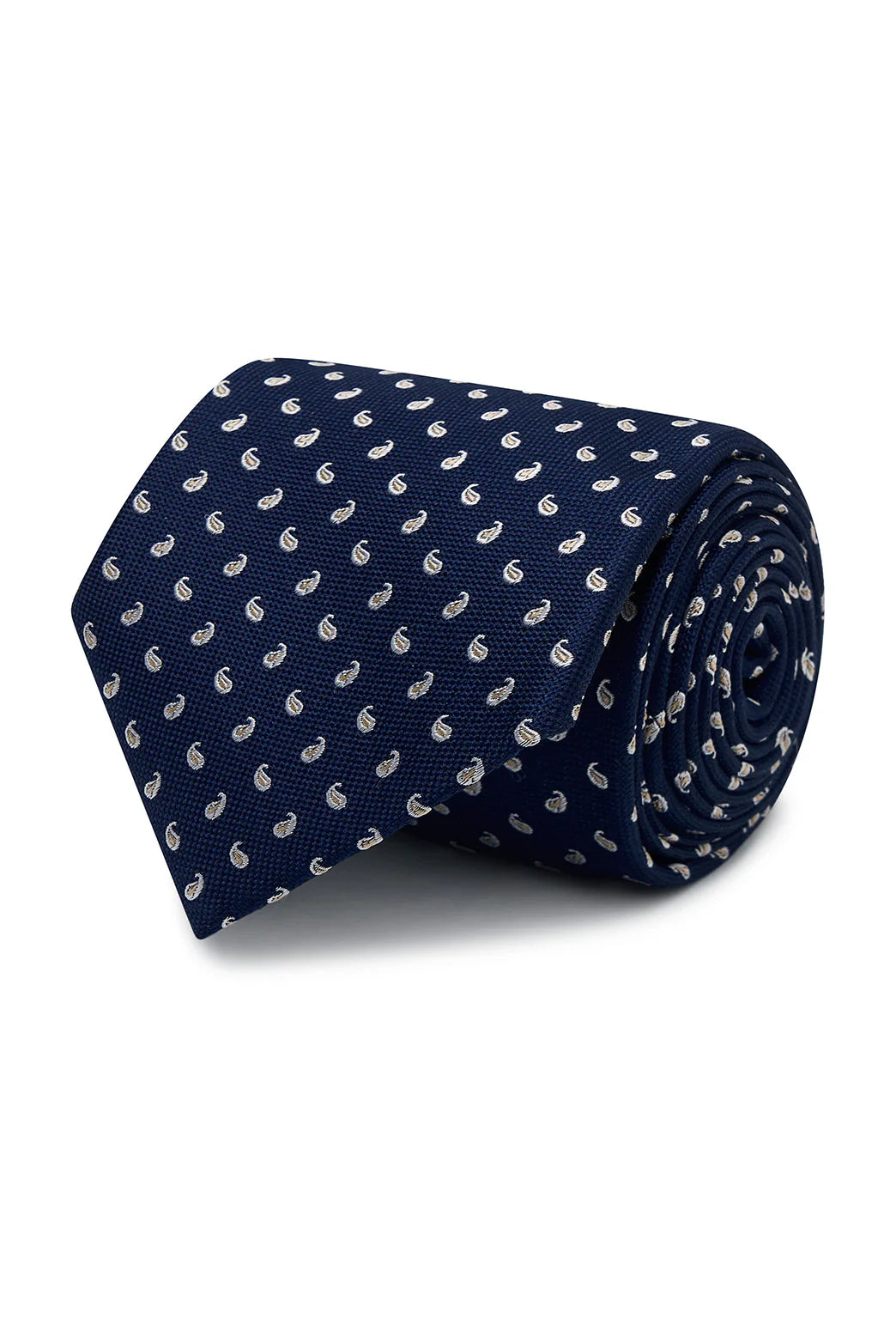 Cut from pure silk and tipped in a contrasting blue and white stripe, the Denton Tie is a subtle expression of elegance. Designed by M.J. Bale to elevate both business and formalwear with understated charm.
