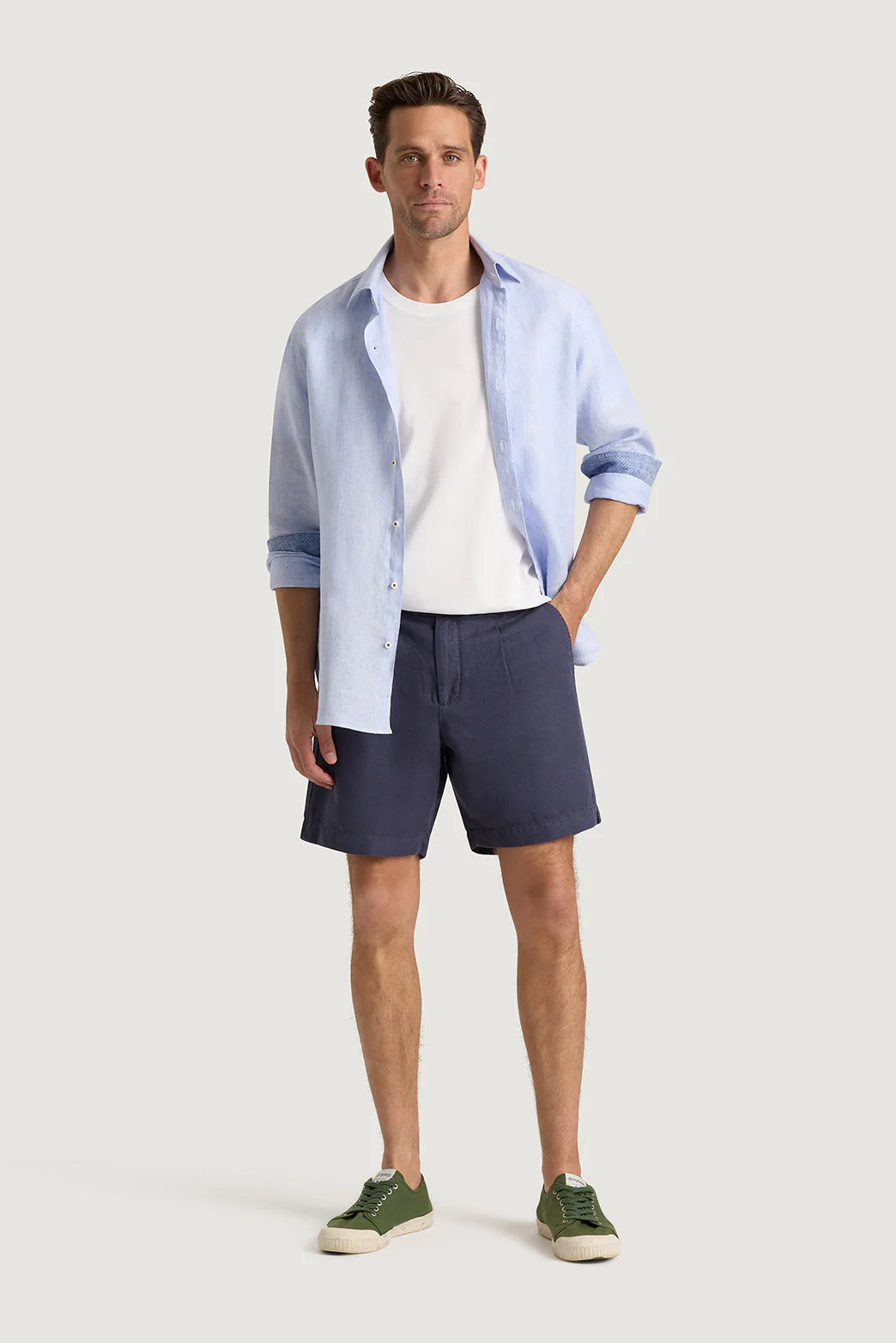 The Menorca Side Tab Short has been crafted from an M.J. Bale exclusive cotton linen blend twill. Cut to our Regular Fit silhouette, these shorts feature a regular rise with zip fly and front button closure, side tabs at waist and are finished with reinforced seams.