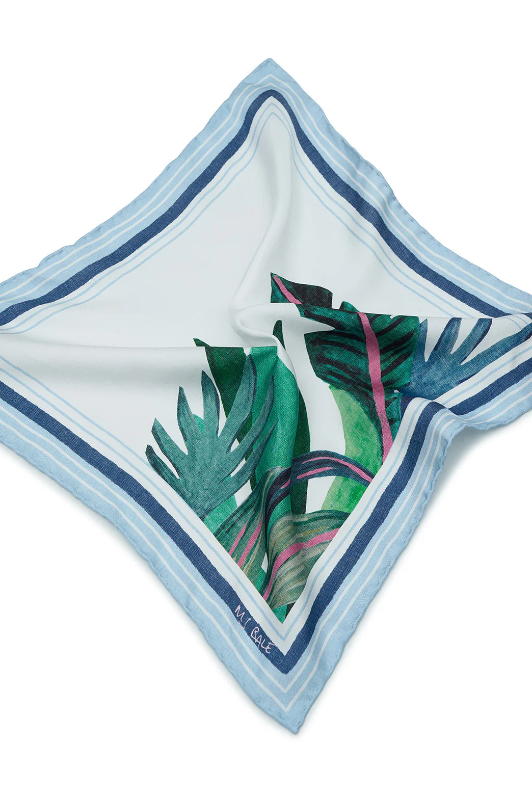 The Saint Tropez Pocket Square features exclusive M.J. Bale prints on fine 18mm silk twill, finished with rolled edges for refined detail. Measuring 30cm x 30cm, it’s a compact but impactful accent, perfect for adding a dash of personality to a summer linen suit or a crisp navy blazer. Whether tucked with precision or left nonchalantly puffed, it’s made for the gentleman who understands that a well-chosen pocket square can set the whole tone of an outfit.