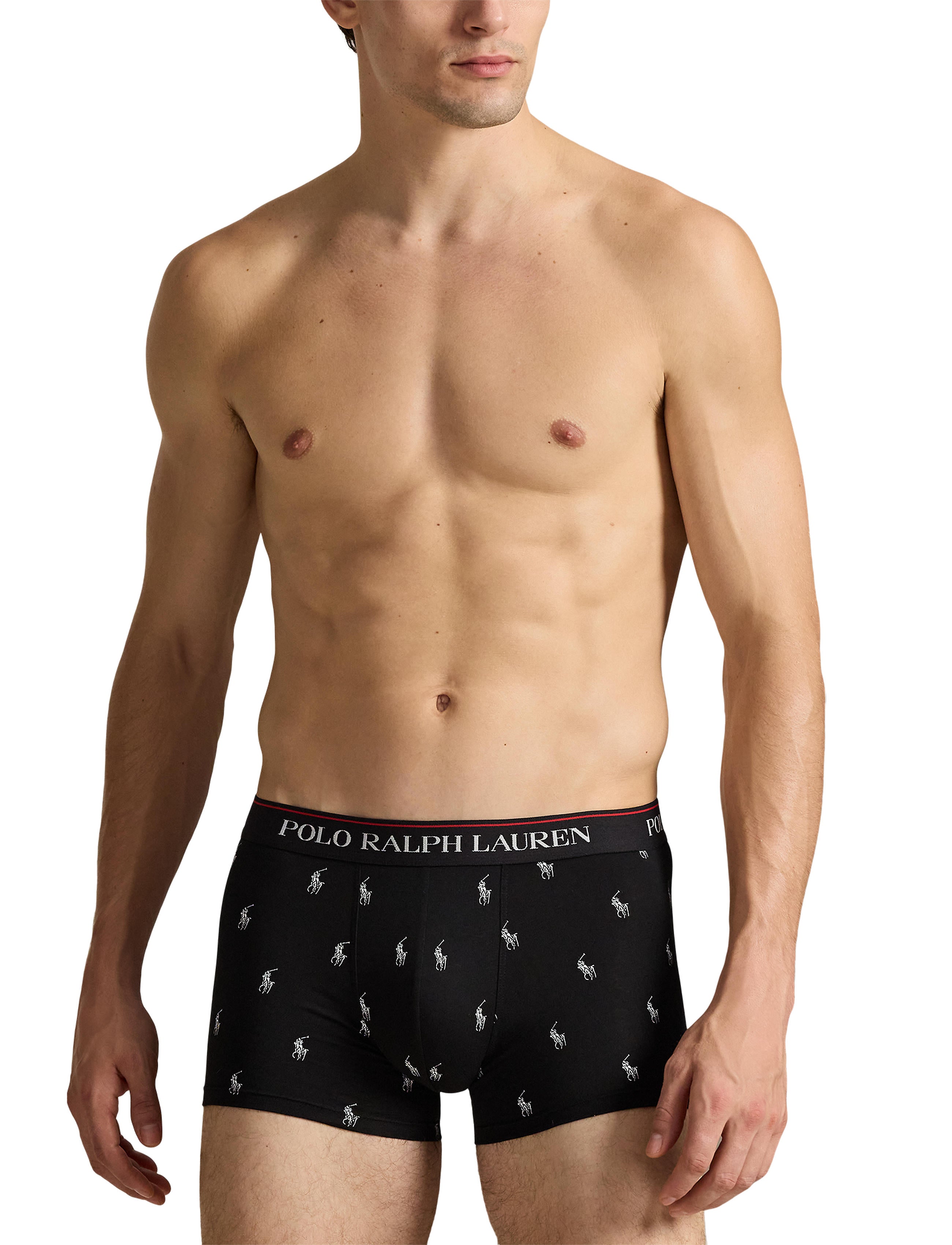 Polo Ralph Lauren keeps your underwear drawer looking cool and refined with this three pack of trunks. In timeless navy, each waistband is wrapped...