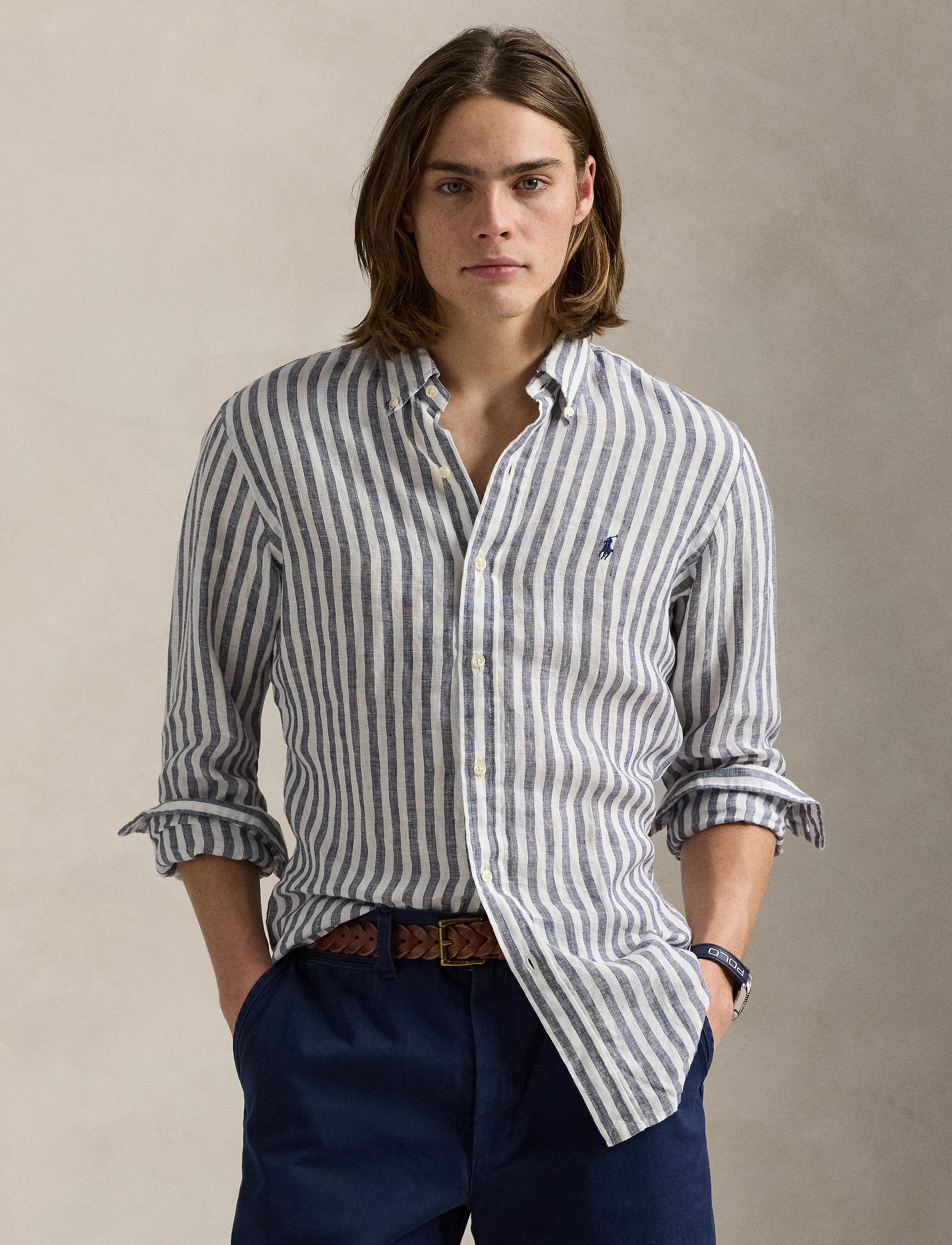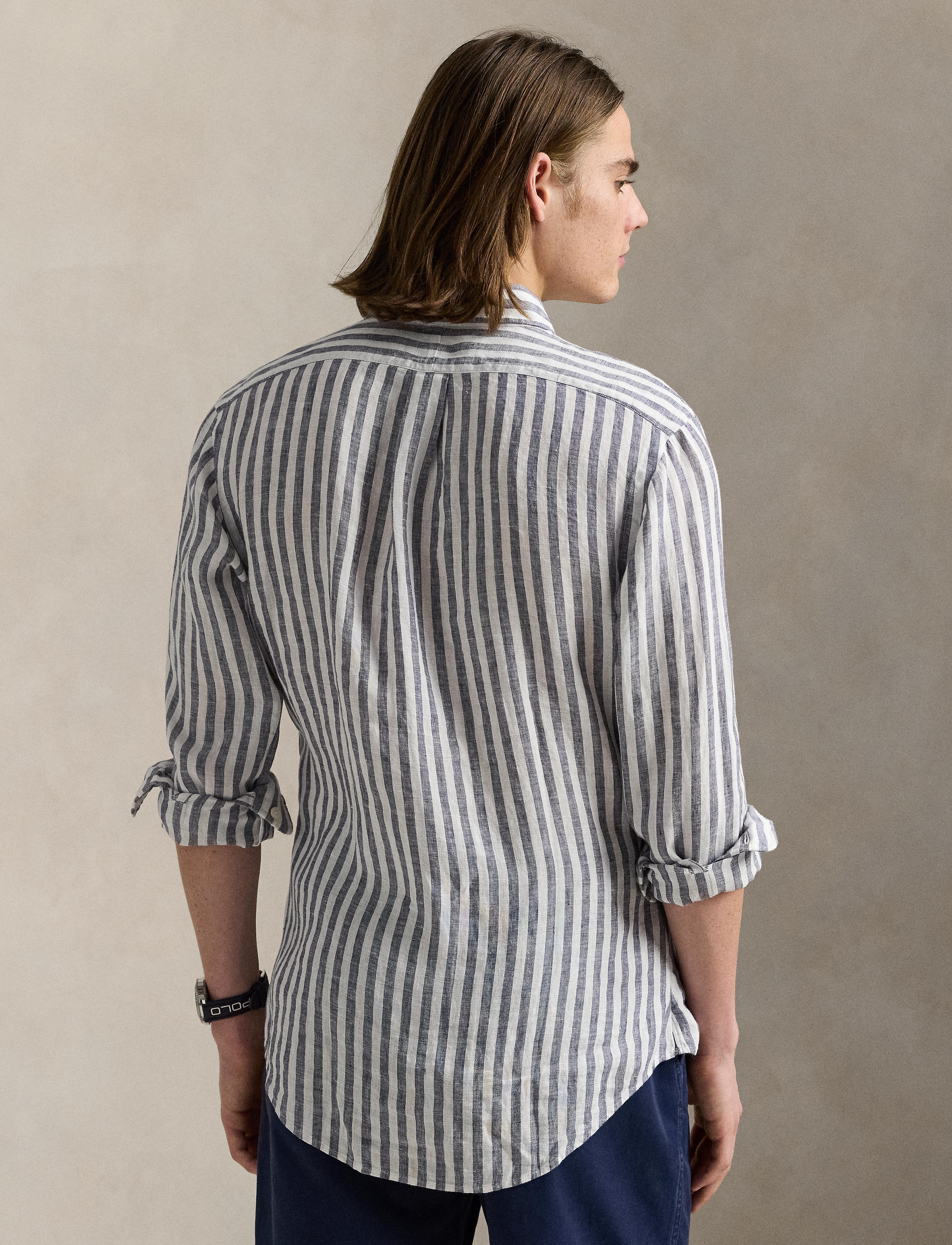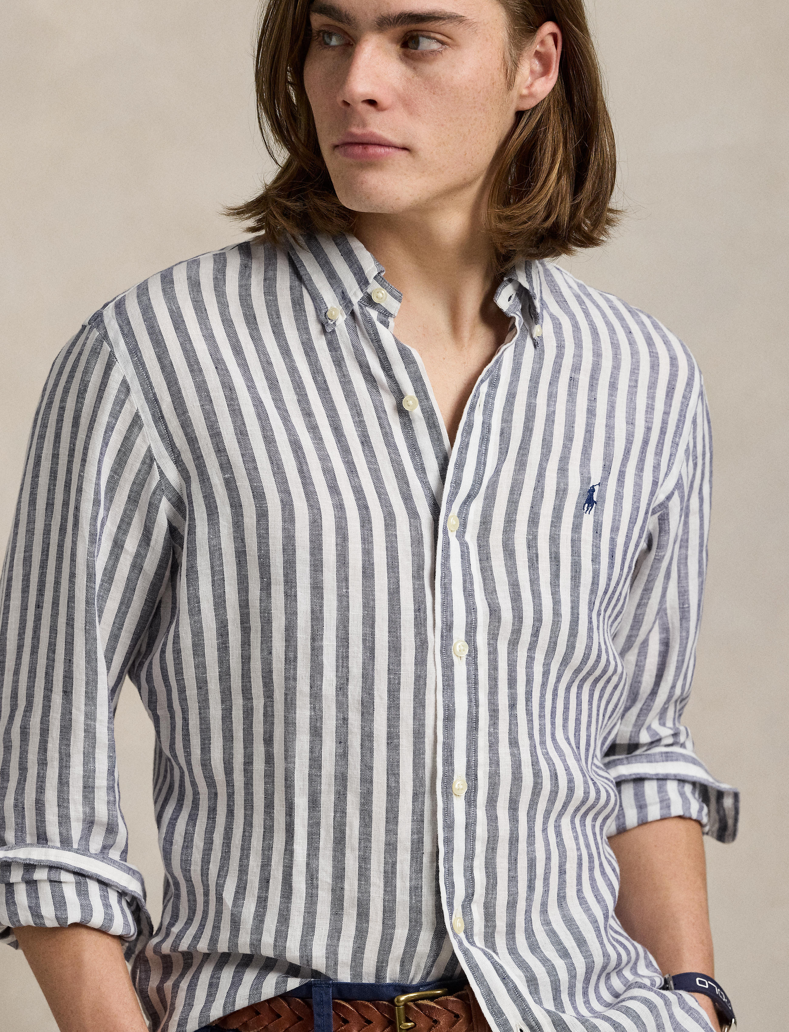 Lightweight, naturally breathable linen and a trim fit establish this shirt as a warm-weather essential. Split back yoke with a box pleat ensures a comfortable fit and a greater range of motion.