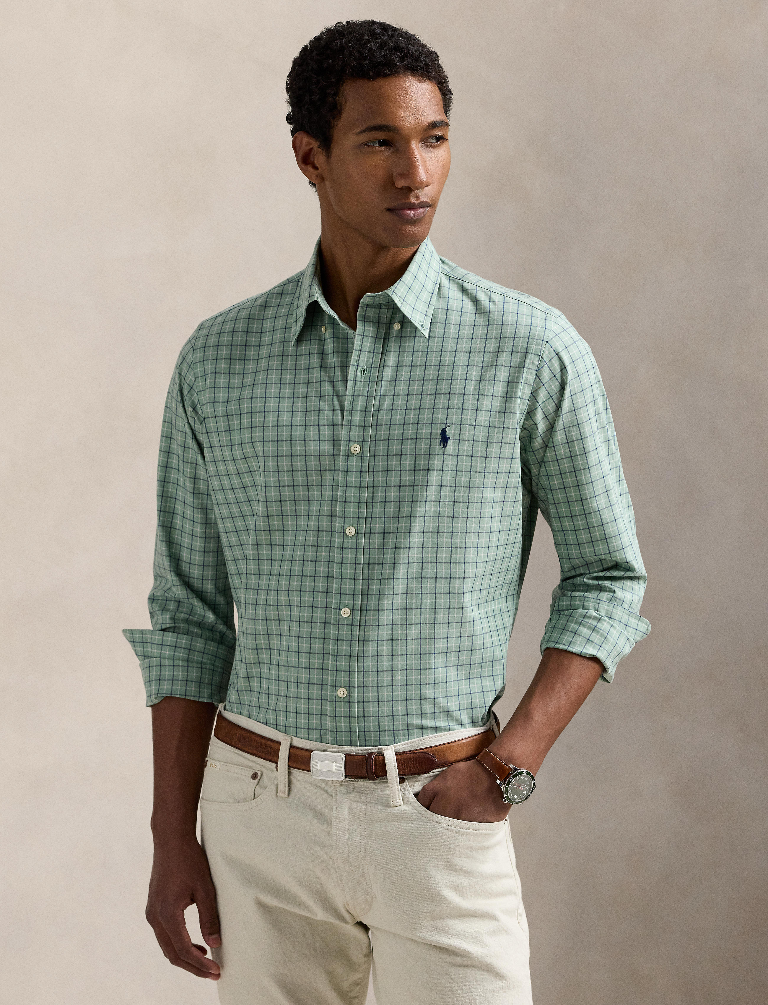 Crafted with silky cotton poplin, this checked shirt features our signature embroidered Pony and genuine mother-of-pearl buttons. Custom Fit: a t...