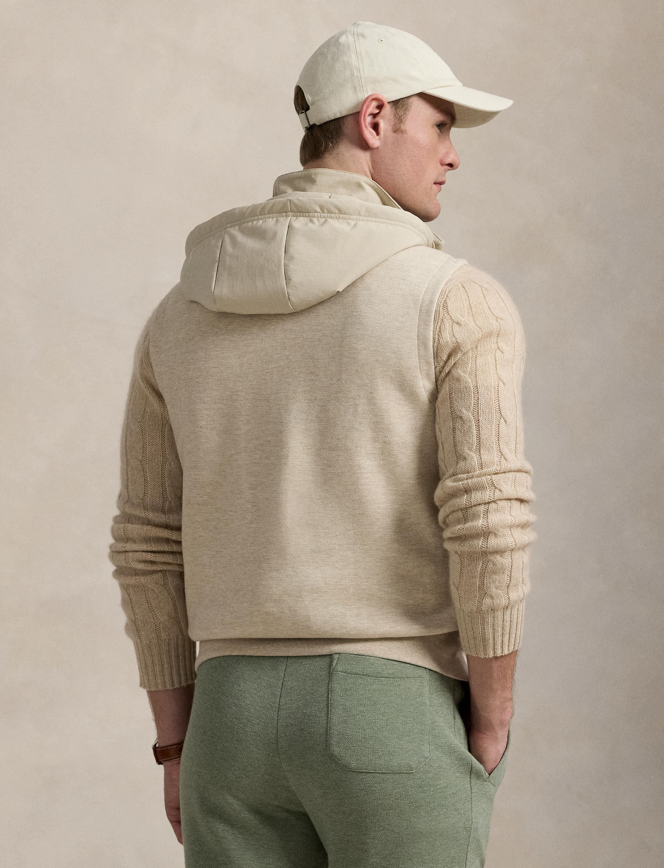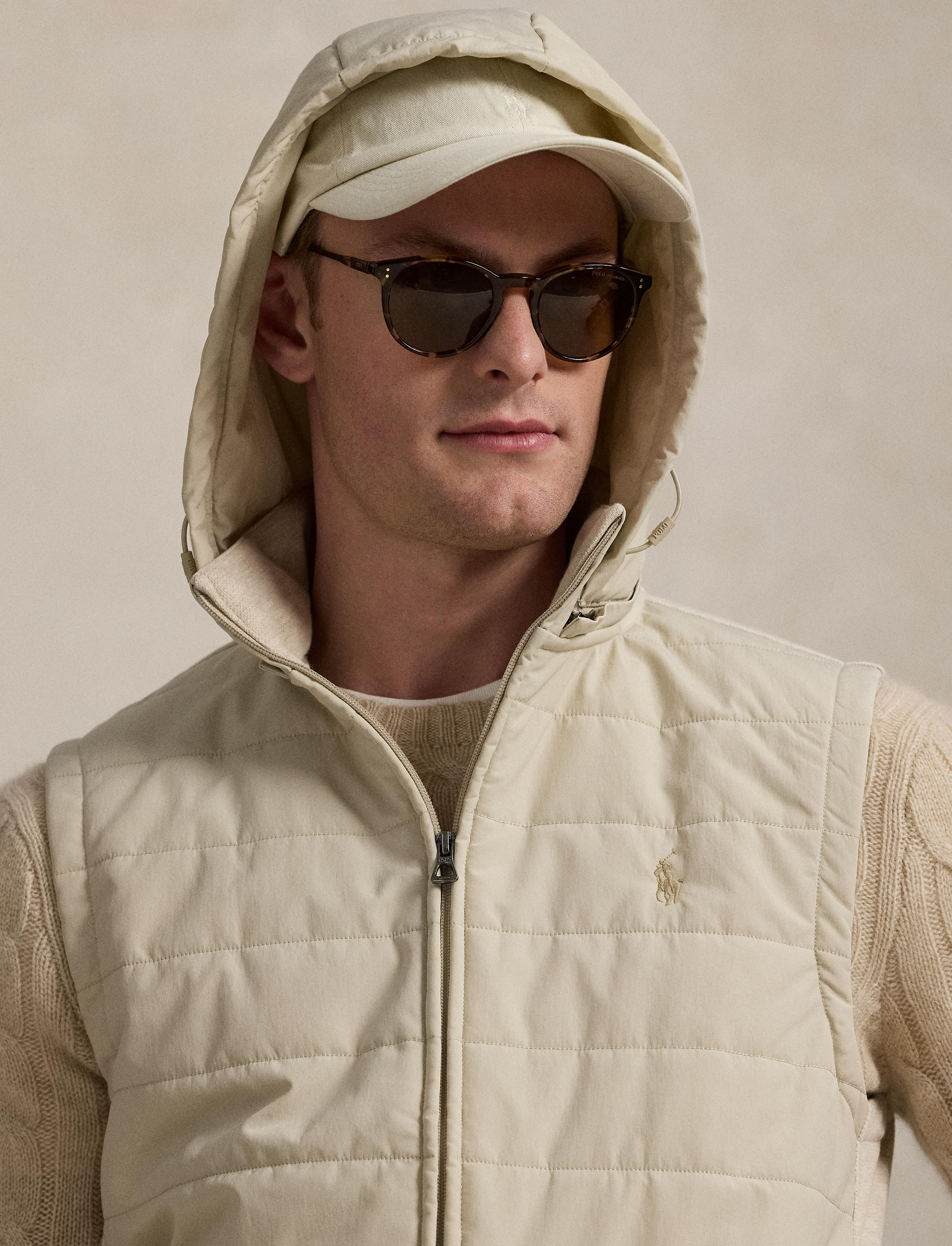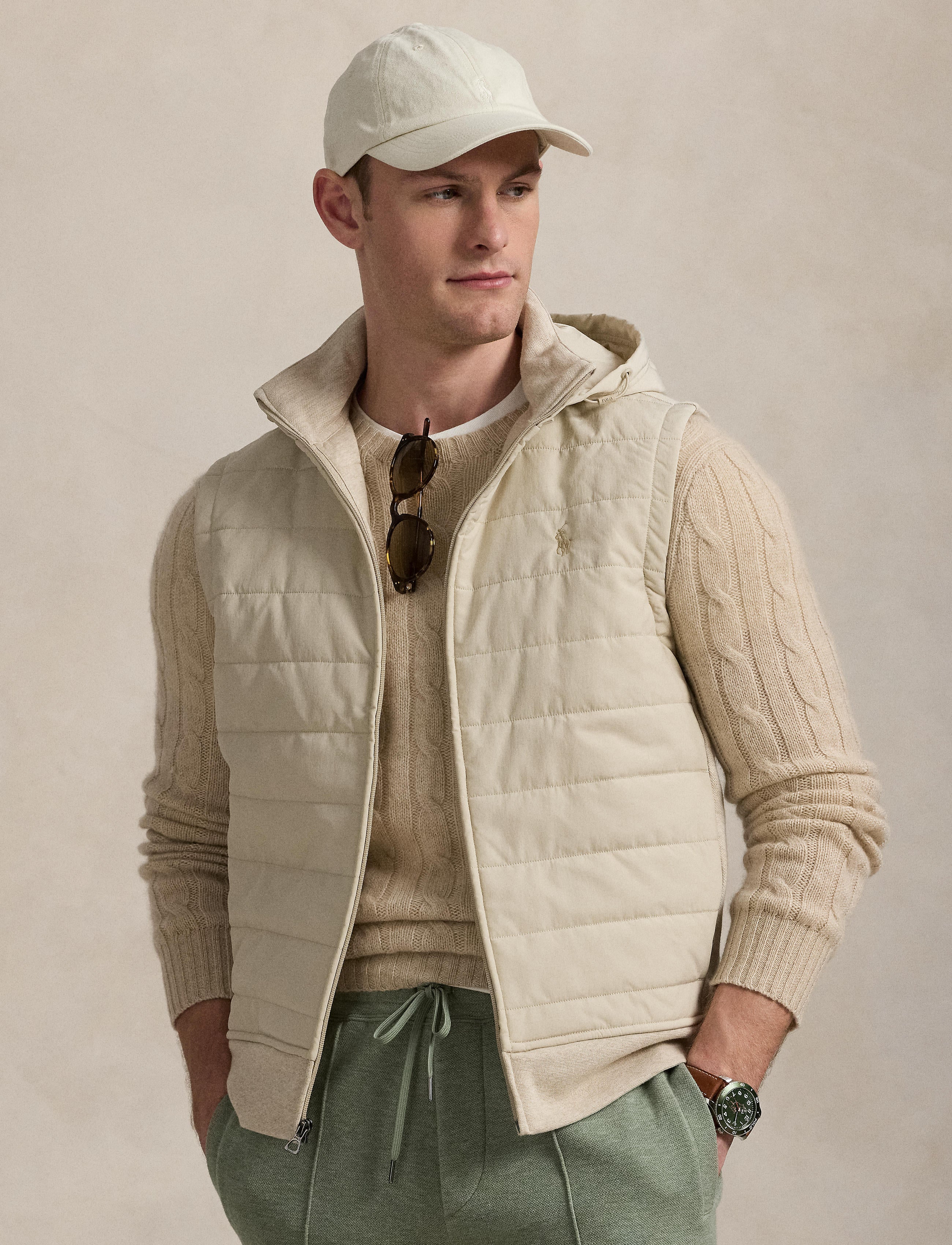Polo Ralph Lauren - Quilted Front Hybrid Full-Zip Vest - Dune Tan