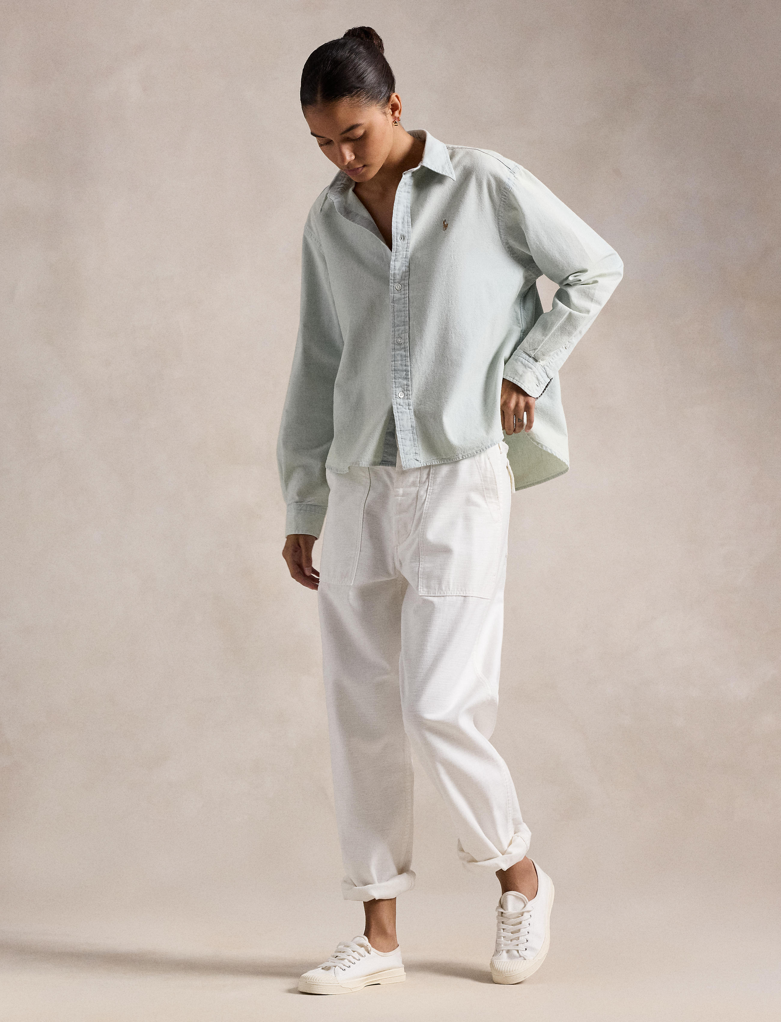 A relaxed take on a timeless classic, the Polo Ralph Lauren Wide Cropped Chambray Shirt blends effortless structure with soft, lived-in appeal. Cr...