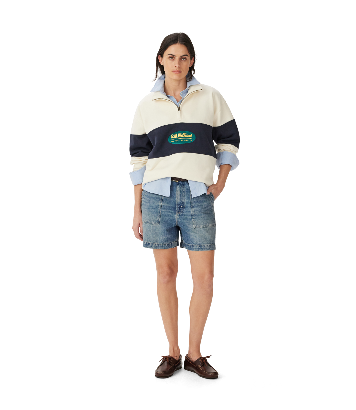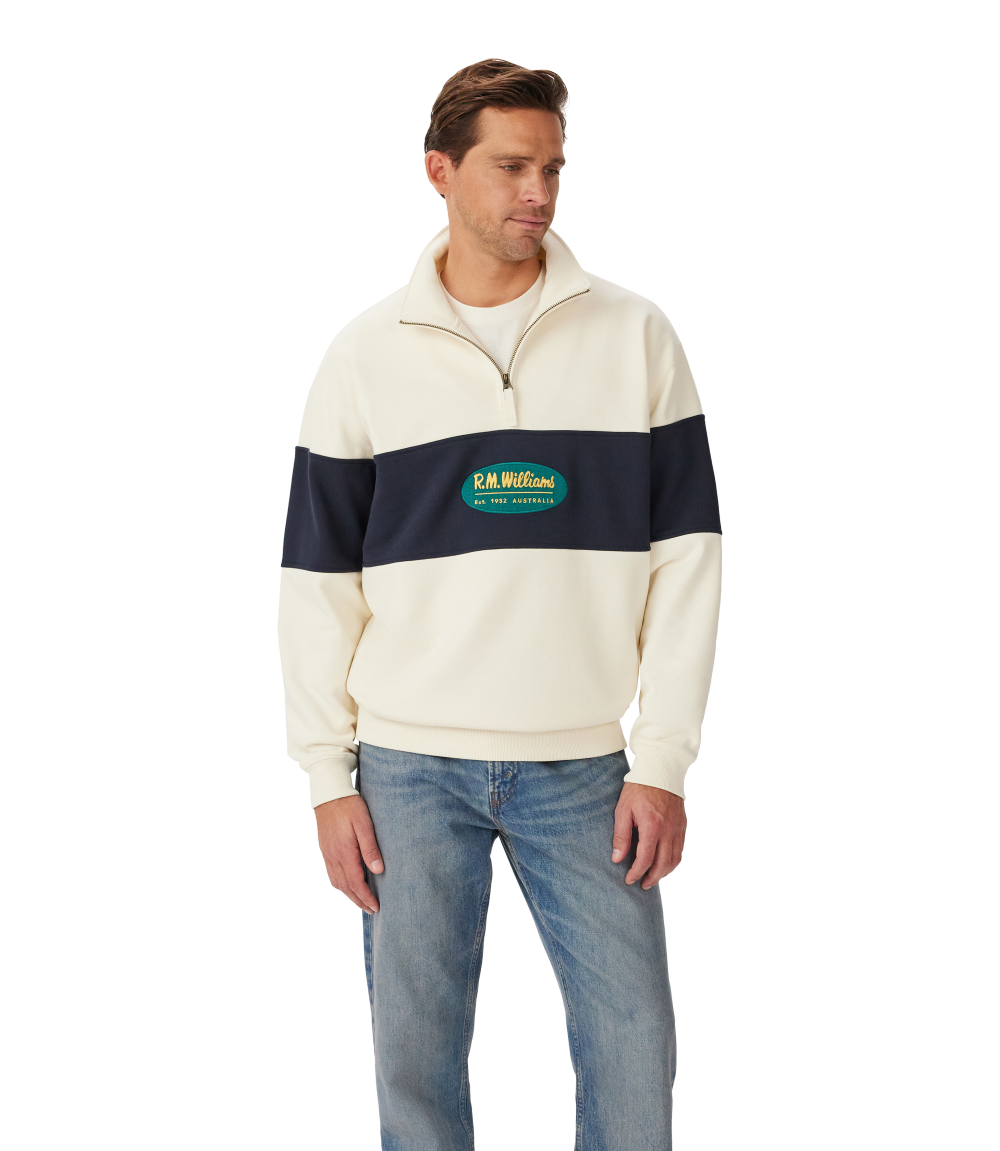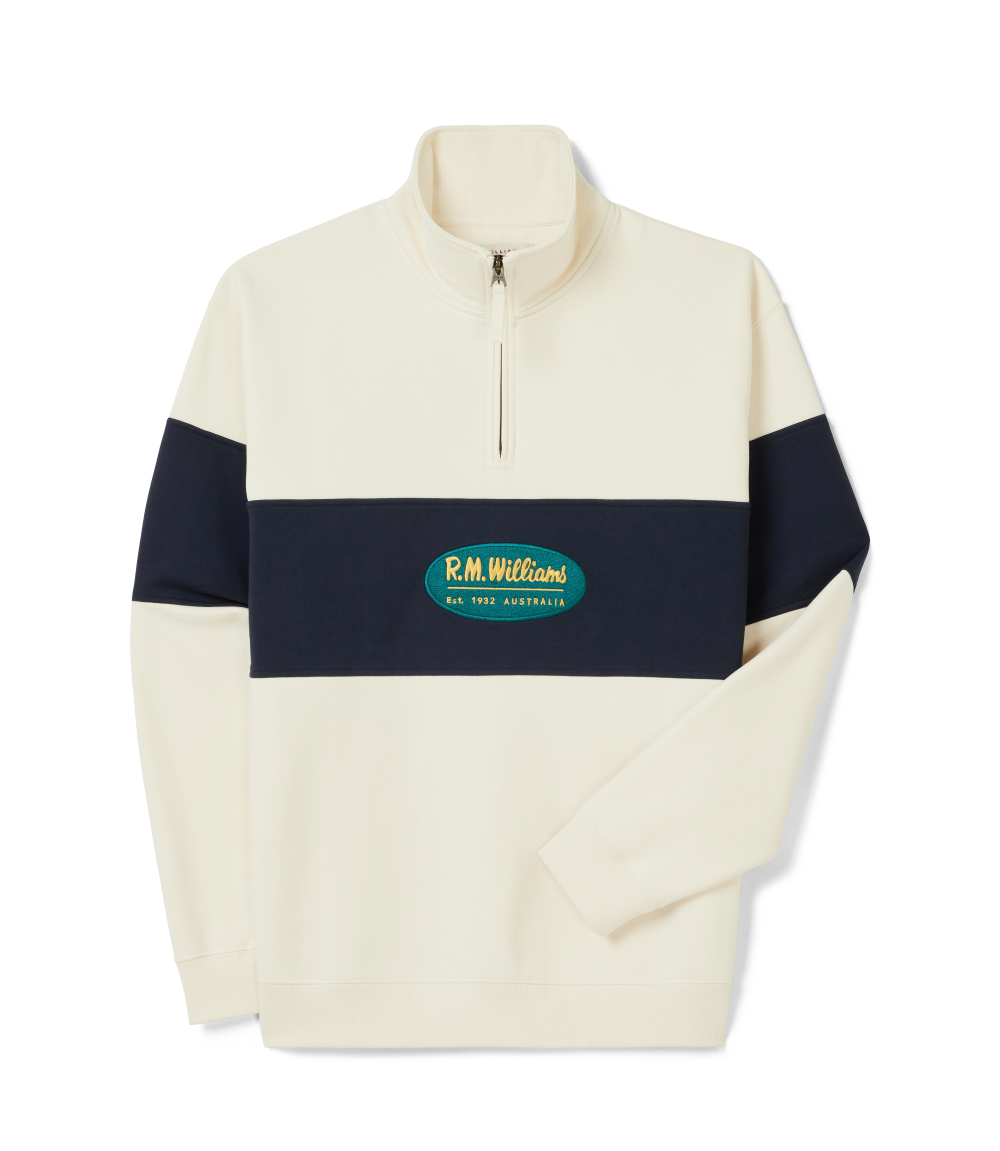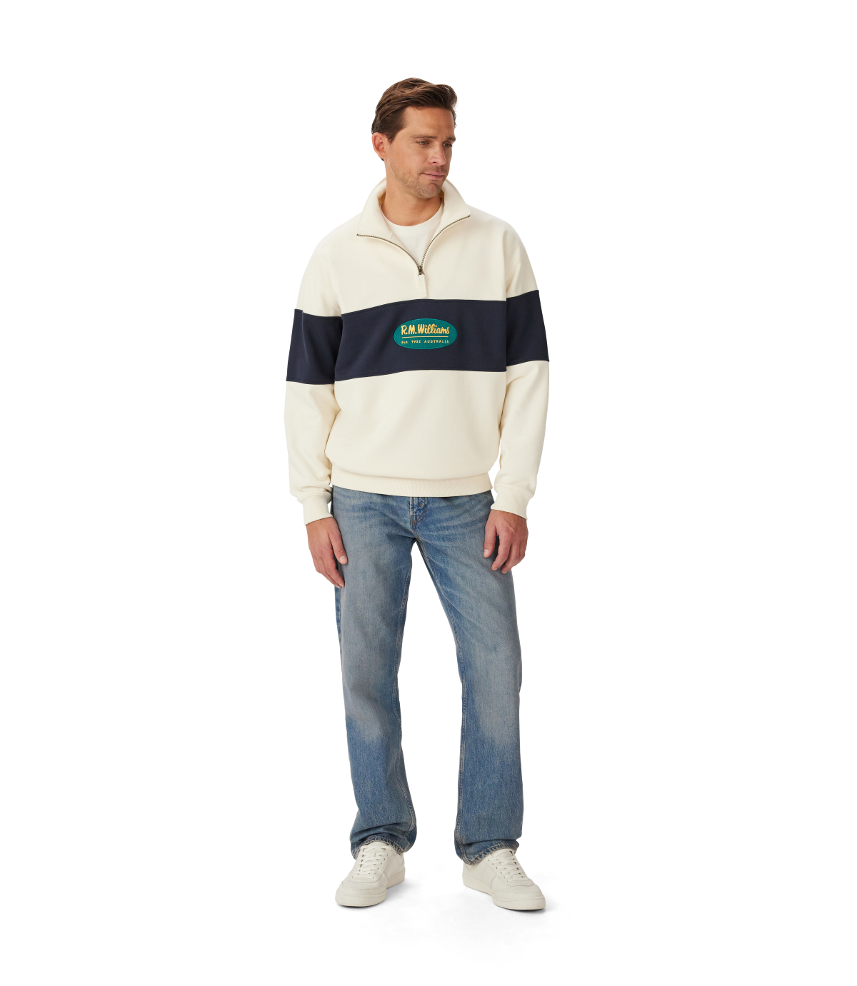 R.M.Williams - 90s Logo Quarter Zip Sweatshirt - Ecru & Navy