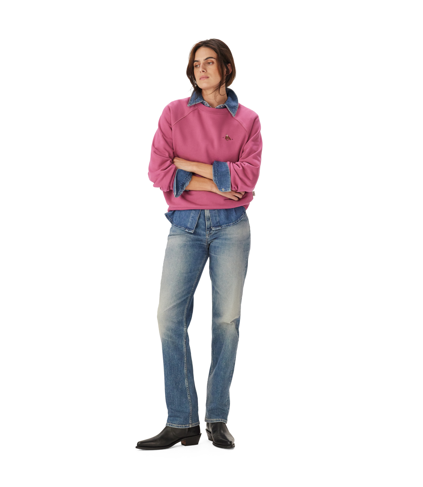 A relaxed sweatshirt, crafted from breathable organic cotton with raglan sleeves and heritage-inspired embroidery on the chest.