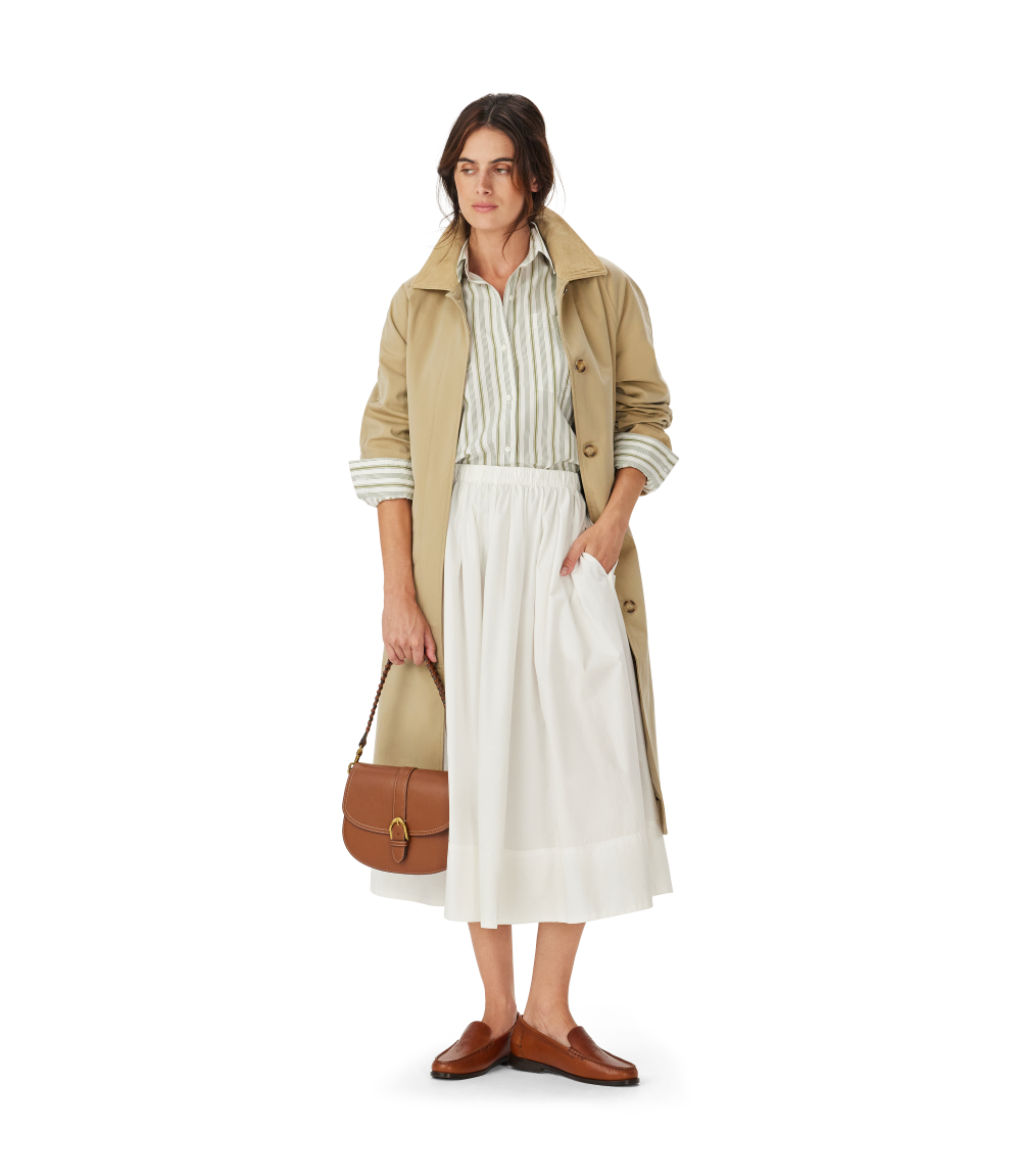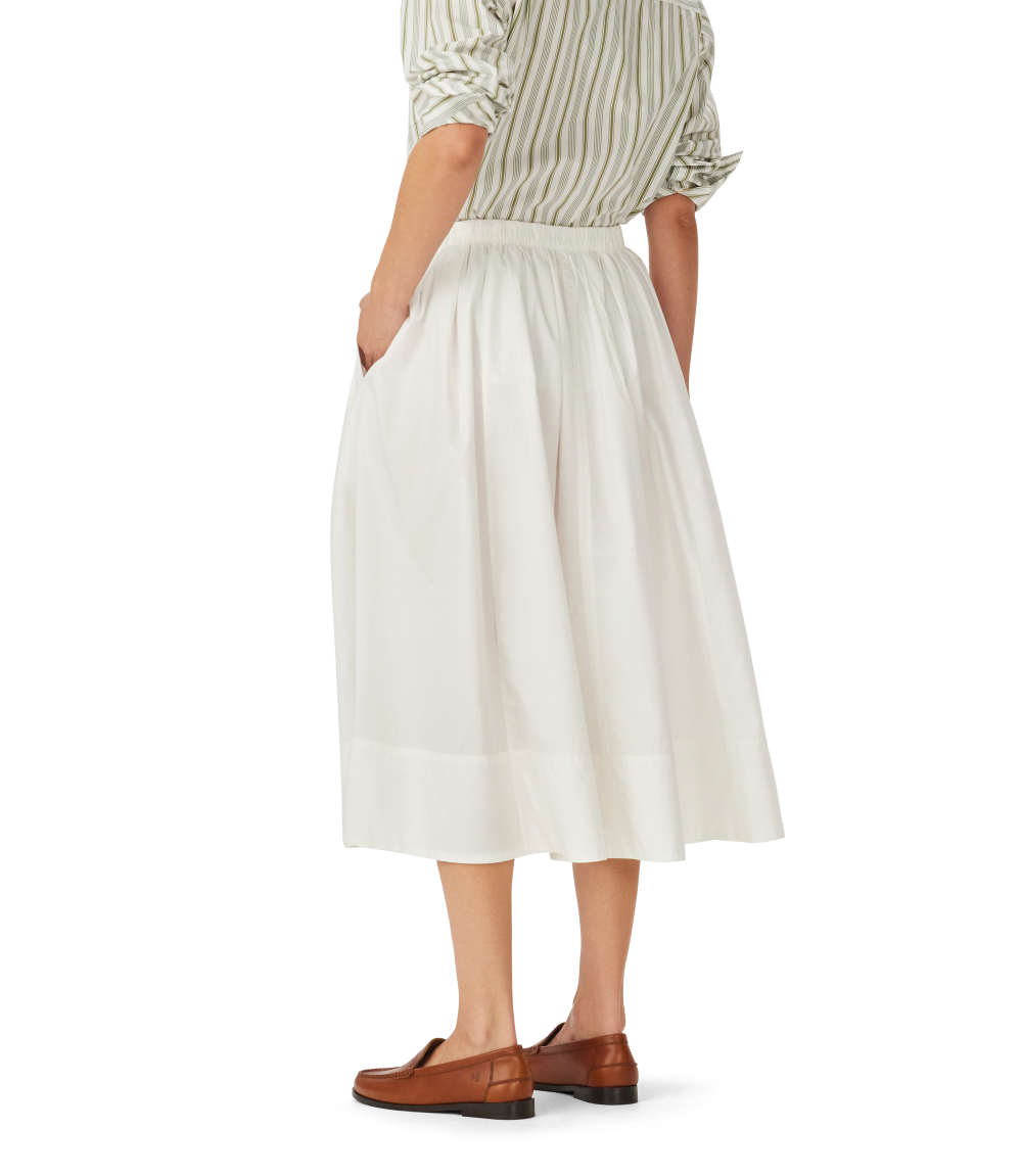 Designed to dress up or down, this versatile midi length skirt is crafted from lightweight cotton poplin, with two handy pockets and an elasticate...