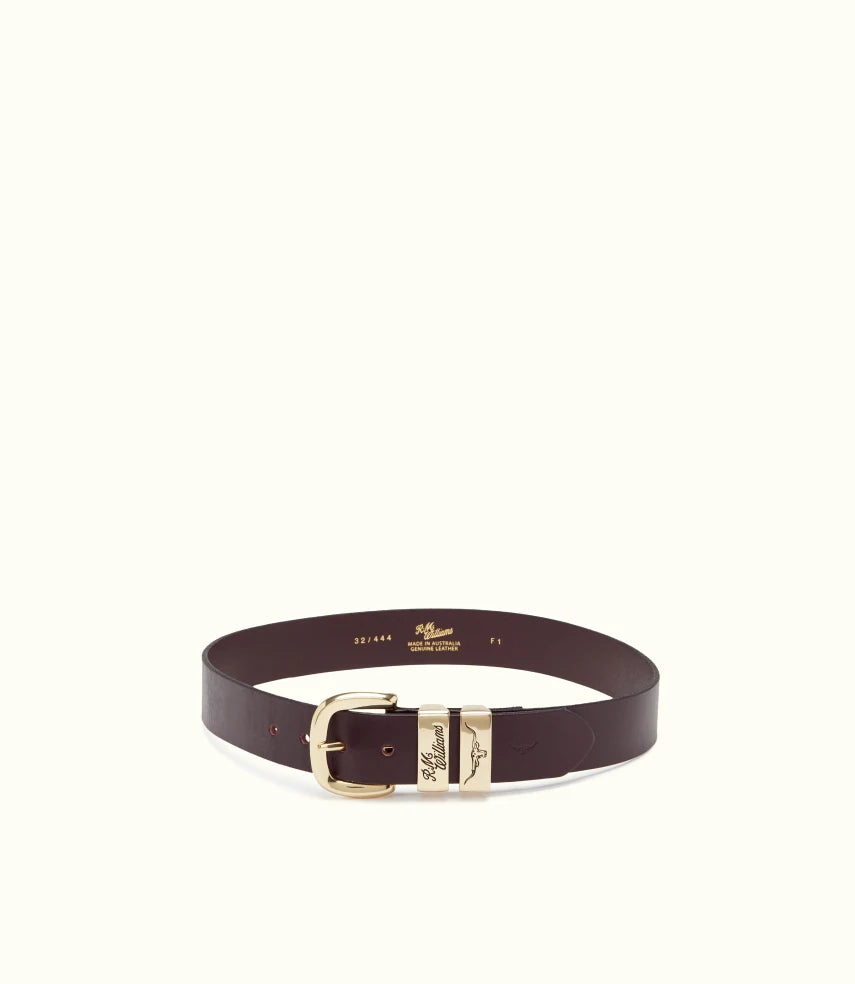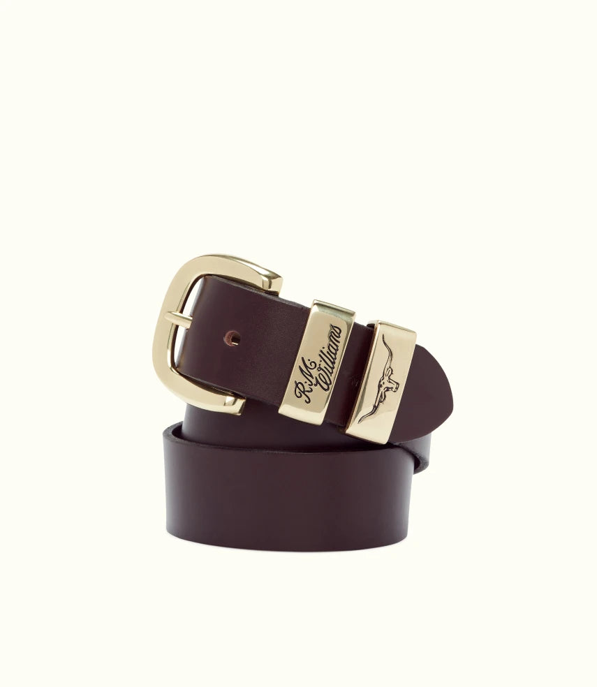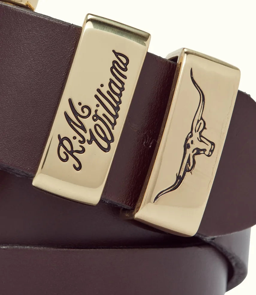 Made in Australia, the 3-piece Solid Hide belt is an R.M.Williams classic, crafted in premium solid hide leather, it features a 1 1/2" strap, brass buckle, and double metal keepers with debossing.