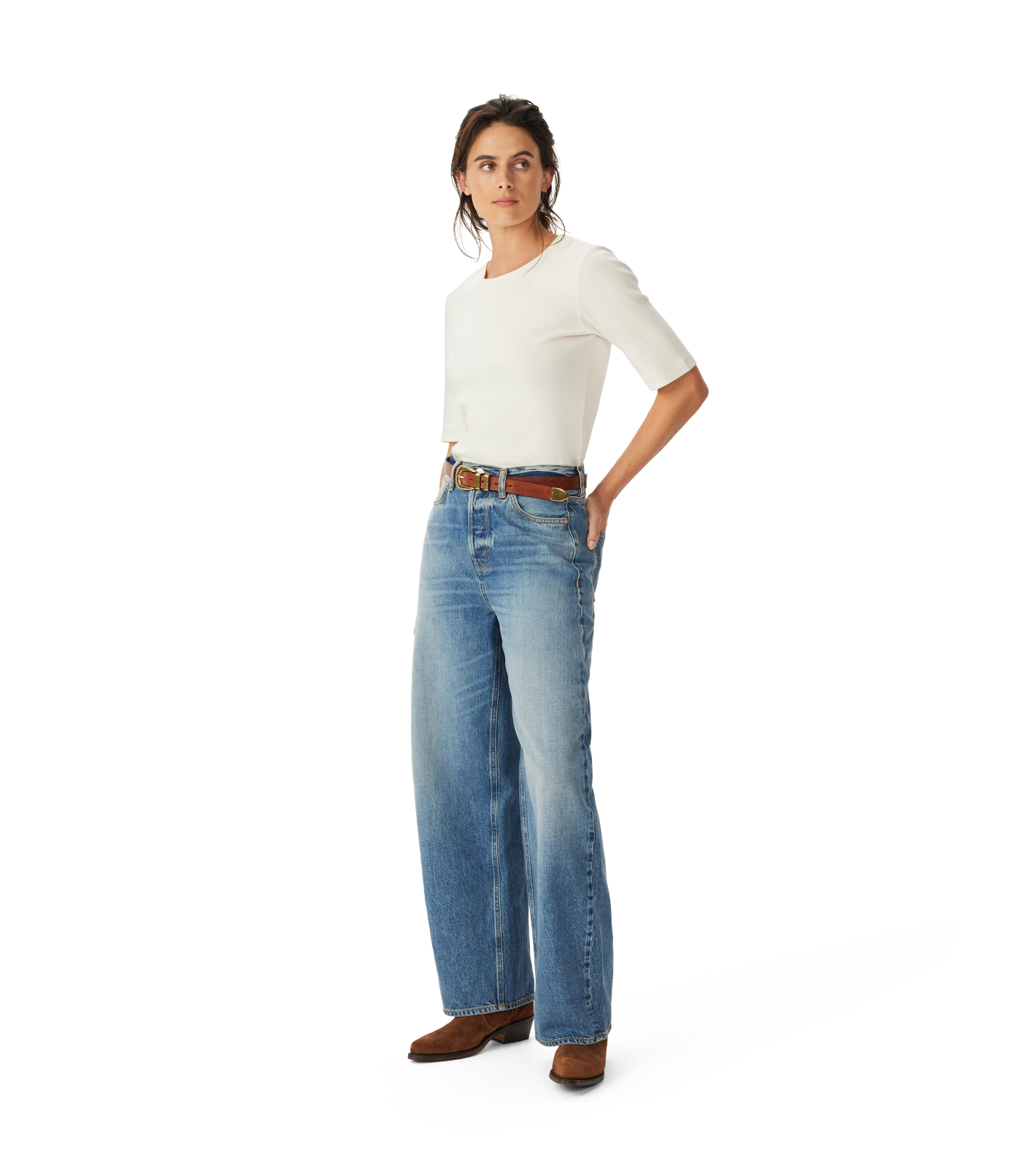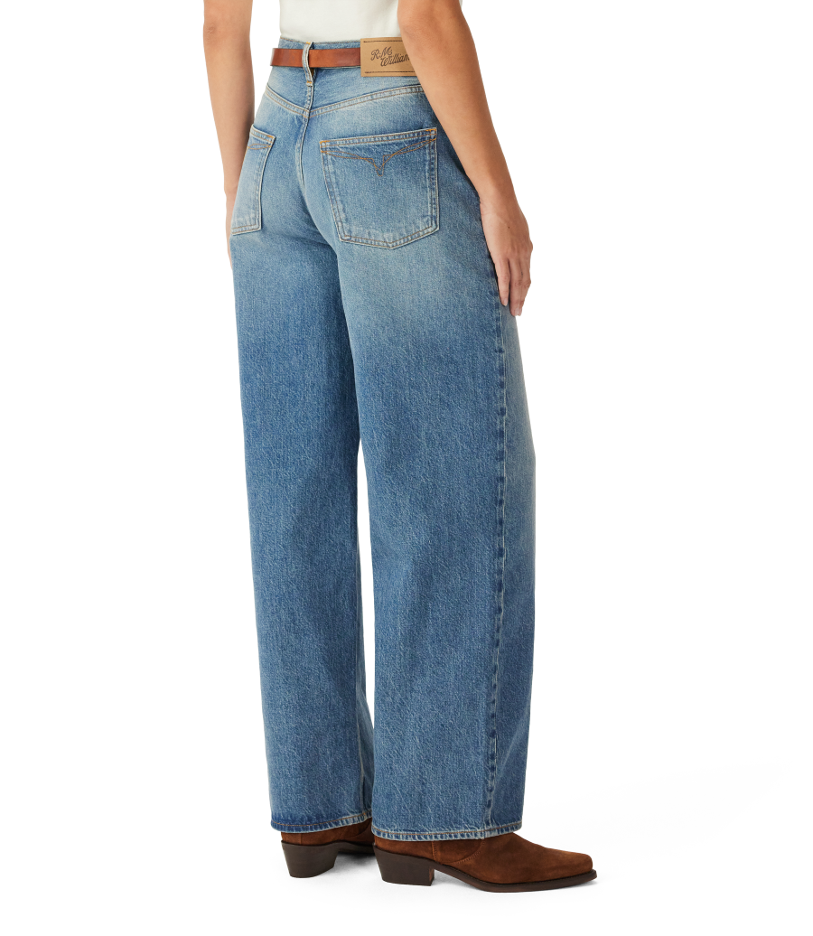 A high-rise, wide leg jean, designed for daily wear. It's cut in a relaxed fit from Australia Good Earth Cotton® denim, with signature branded details.