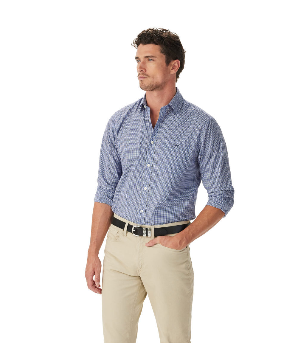 R.M.Williams - Ilford Poplin Shirt - Check - Blue & White