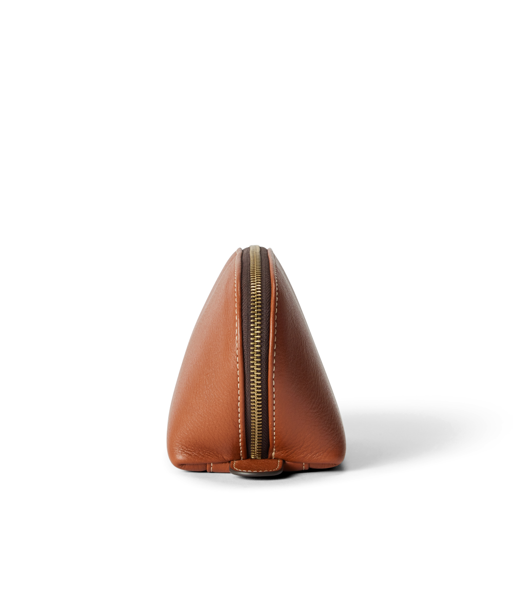 This elegant cosmetic case, crafted from full grain nappa leather, features a recycled nylon lining, antique brass zip closure, three internal sli...