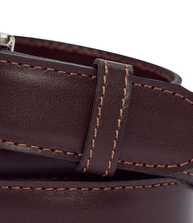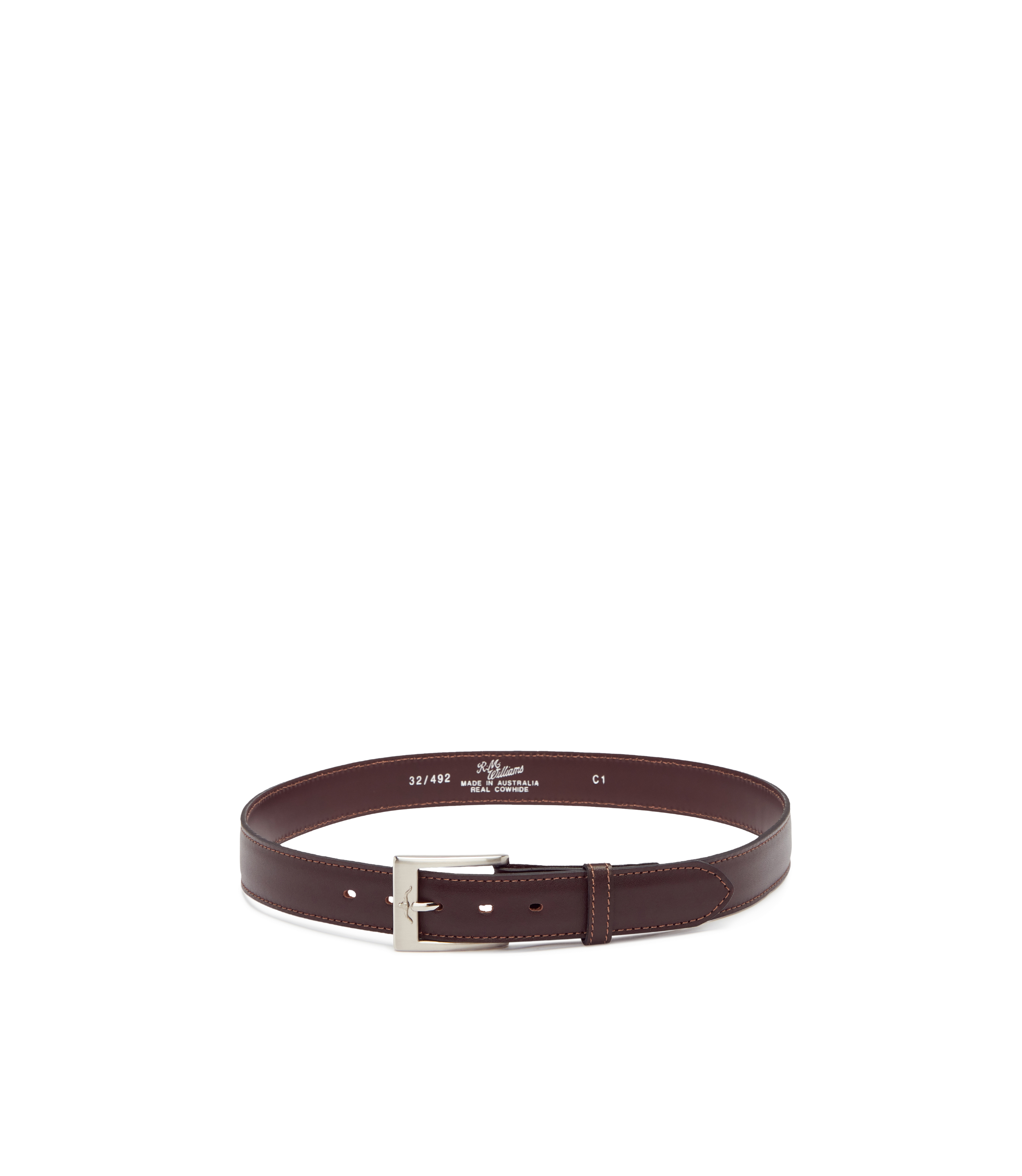 The Men's Dress Belt combines refined craftsmanship with durable practicality, for everyday wear. The 1 1/4" stitched yearling strap is finished with a single leather keeper and a neat rectangular nickel buckle.