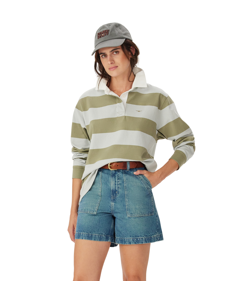R.M.Williams - Narran Stripe Rugby - Lichen/Light Blue