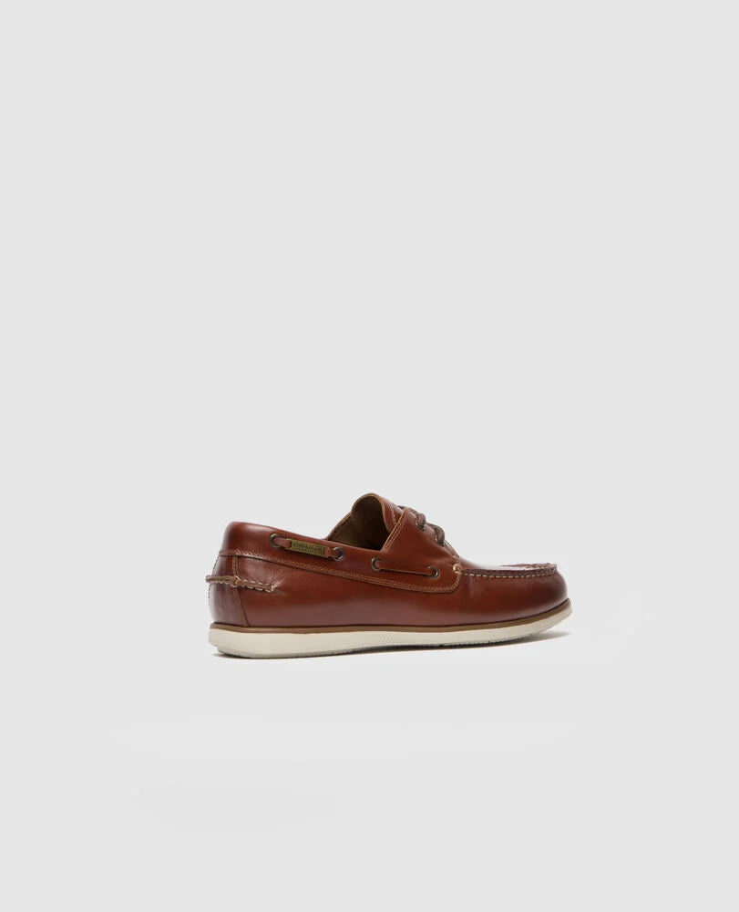 The Boardwalk Boat Shoe is crafted from supple leather, with leather and fabric lining, and a leather covered removable moulded footbed. The dual tone outsole is made from flexible, hard wearing rubber delivering durability and comfort. The upper fetaures an antique metal Rodd & Gunn branded keeper threaded through the topline lace.