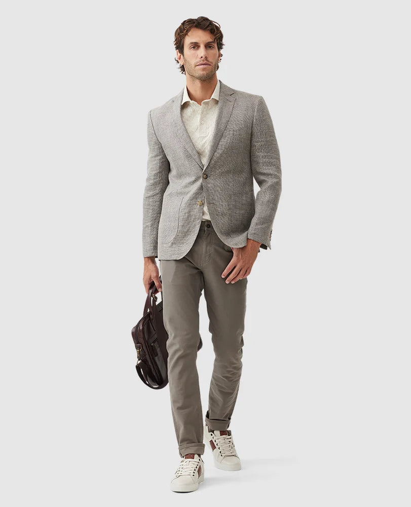 This jacket is crafted from a rich wool-linen blend that is woven in Italy, and features a lightweight and textured hopsack weave. Expertly crafted in our deconstructed make with natural shoulder padding, which lends the jacket a relaxed yet sophisticated look.